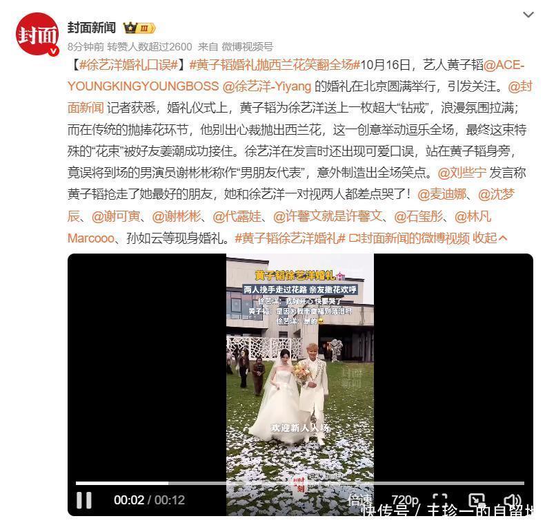 不得不说,黄子韬和徐艺洋的婚礼非常有趣,新人开心,宾客开心,看直播的网友也开心。