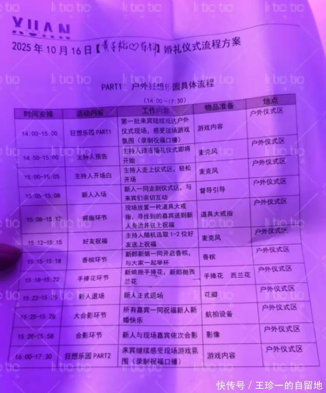 根据已经曝光的婚礼仪式流程图可知,黄子韬和徐艺洋的婚礼是在下午举行,黄子韬也如约开启了直播。