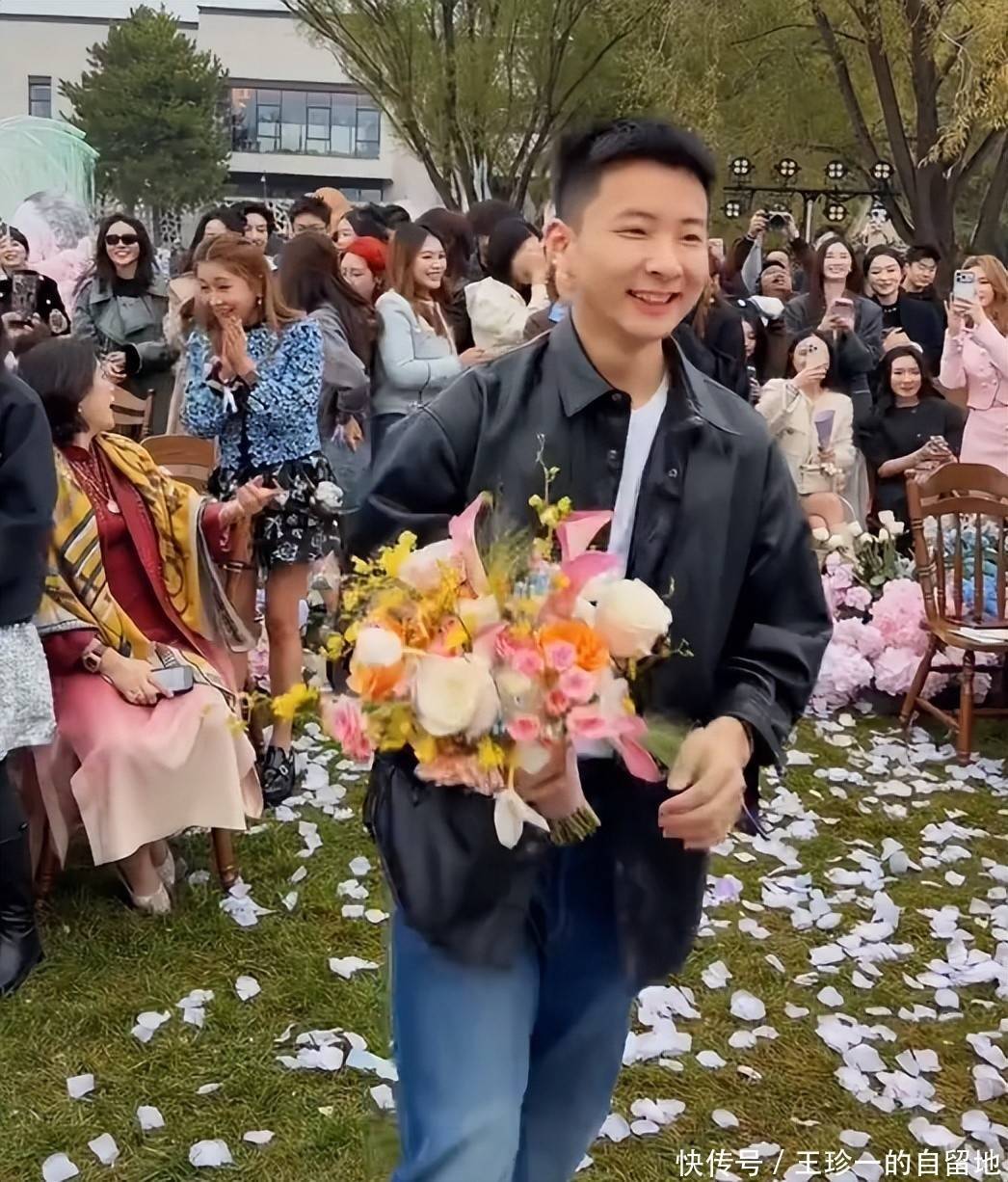 当徐艺洋抛出手捧花后,现场的未婚女嘉宾失落了,因为手捧花被徐艺洋的侄子抢到了。